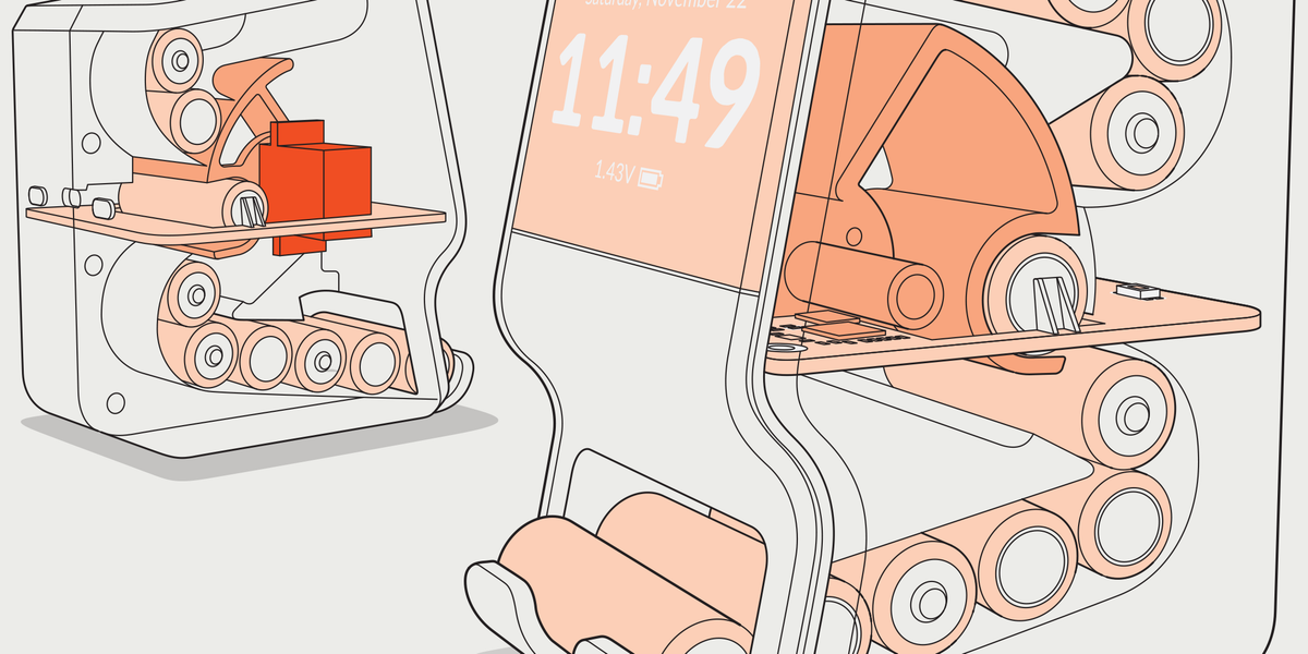 To ease this pain point, I created the Spinc, a DIY device that charges up to seven NiMH AA batteries at a time and automatically figures out the polarity of each cell before charging it; when finished, it drops the batteries into a hopper. You can check on the charging status via a display that doubles as a clock.